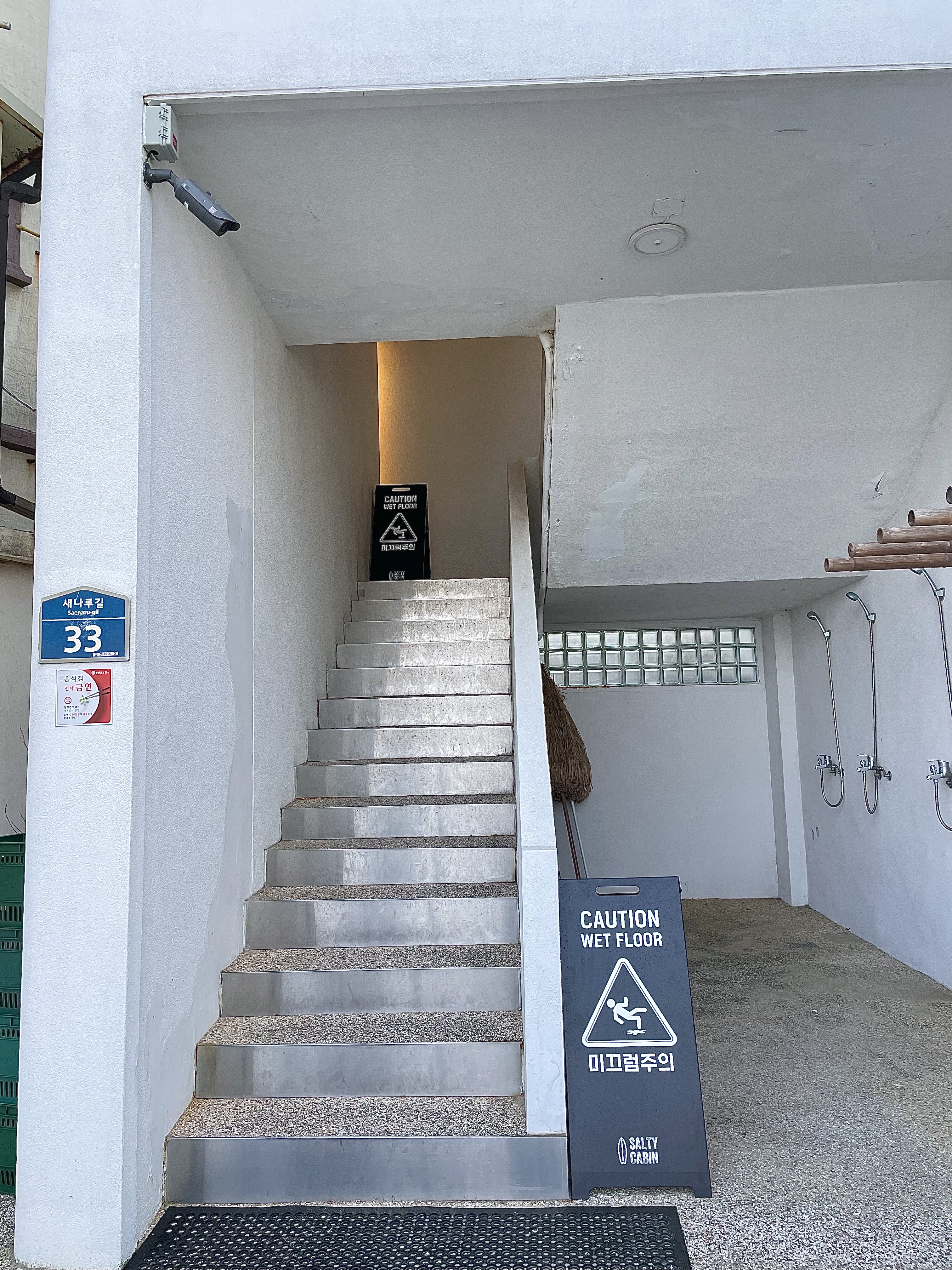 1층 입구 바로 옆에 2층으로 가는 계단이 있고, 화장실은 2층에 있다.