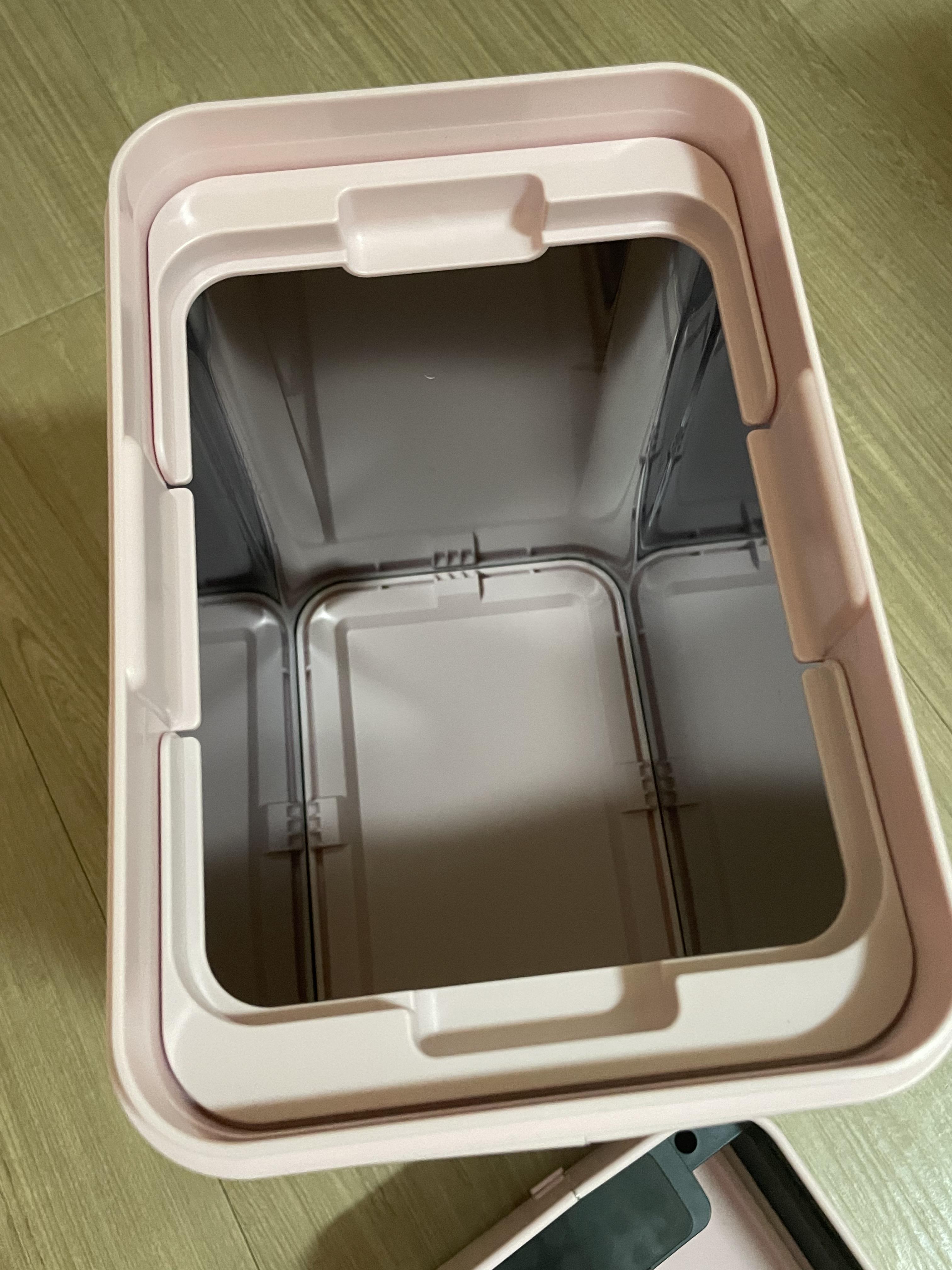 쓰레기통 내부는 스테인리스 430 소재로 되어있어서, 이염에 강하고 물 세척도 가능합니다!
