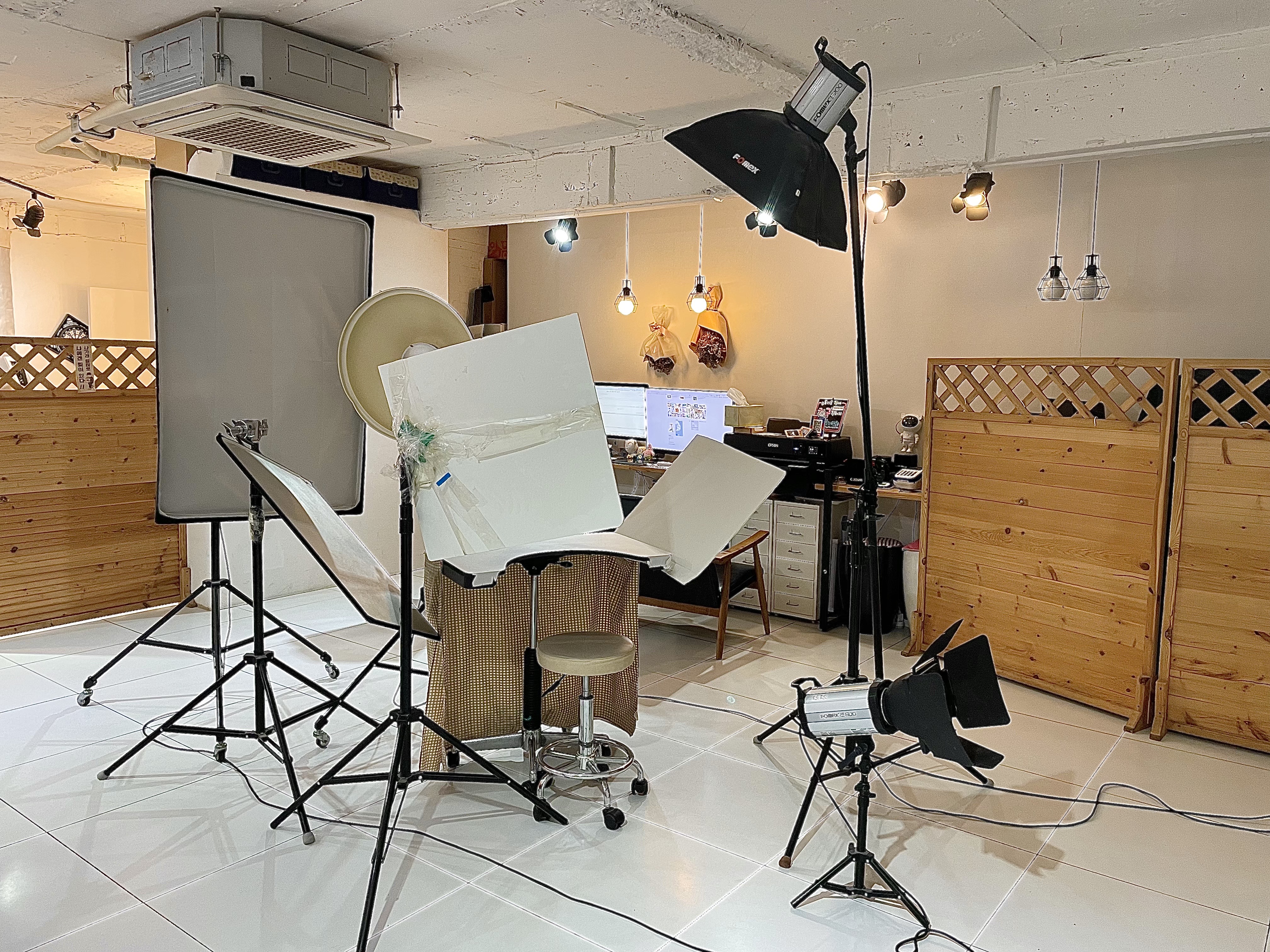 조명이 다양한 형태로 세팅되어 있고, 테스트 촬영을 거쳐 본 촬영을 해주신다.