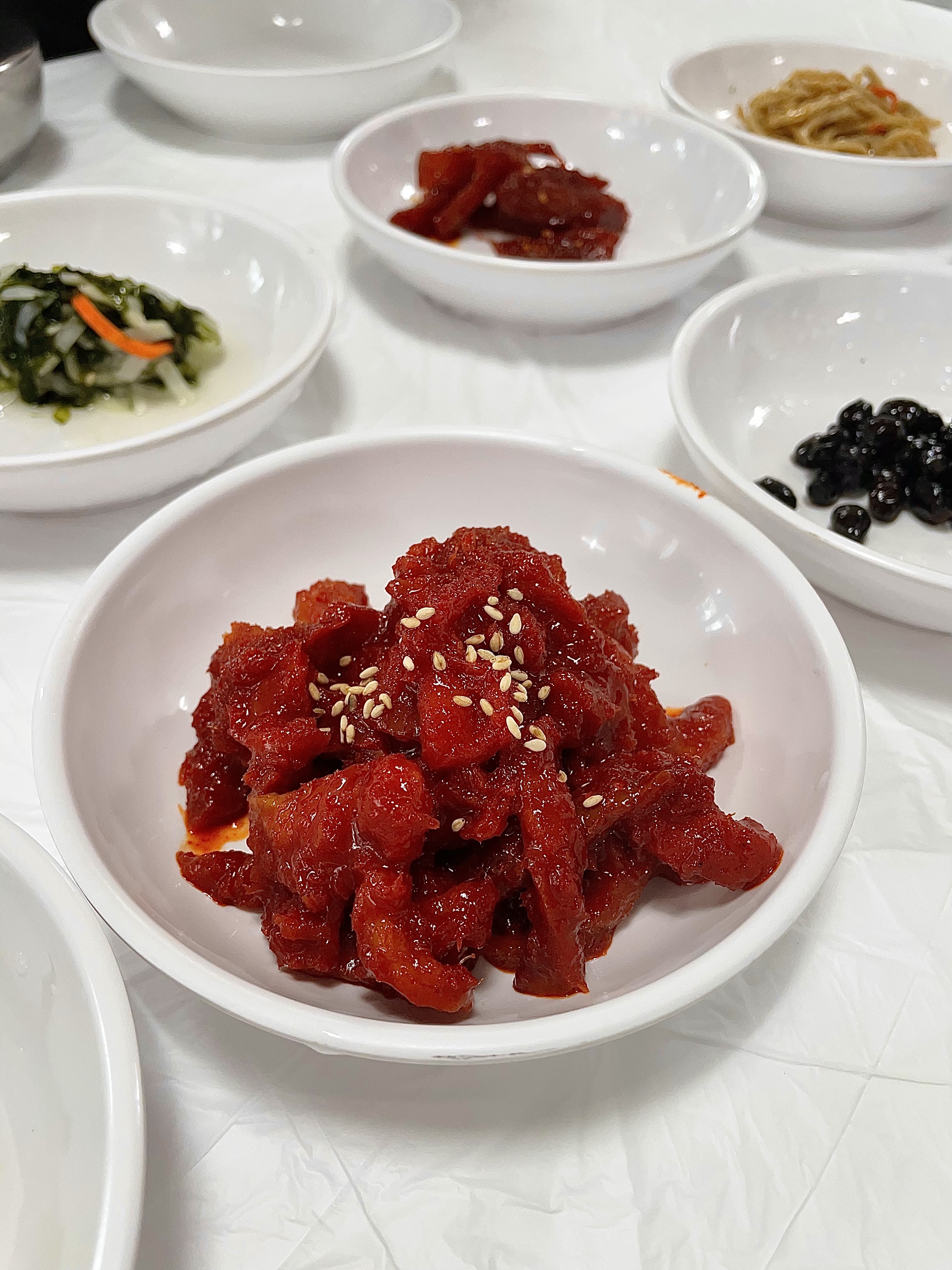 반찬맛은 뭐 고냥저냥~ㅎㅎ 깨 뿌려져 있는게 명태회 무침이다!